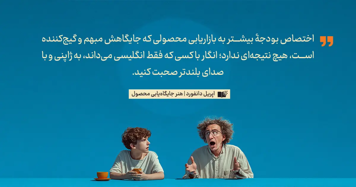 در کتاب هنر جایگاه یابی محصول، اپریل دانفورد توضیح می‌دهد چگونه می‌توان با تغییر نگاه و زمینه، مسیر درک مخاطب را عوض کرد.