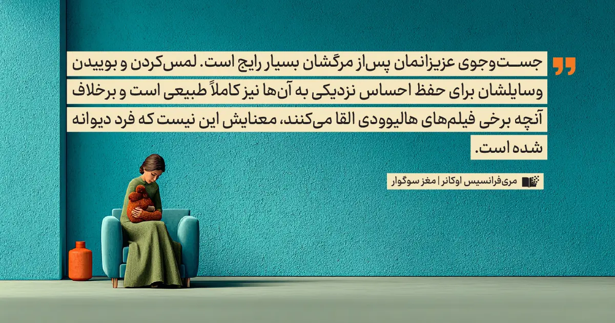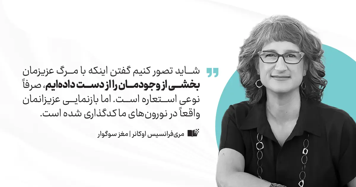 اوکانر توضیح میدهد که سوگ میتواند حس زمان را بر هم بزند، روزها را کشدار یا مبهم کند و میل به «بازگرداندن» عزیز ازدسترفته را حتی سالها بعد زنده نگه دارد؛ این میل نشانه نقص نیست، بلکه بازتابِ تلاش مغز برای یافتن ثبات در جهانی تغییریافته است.